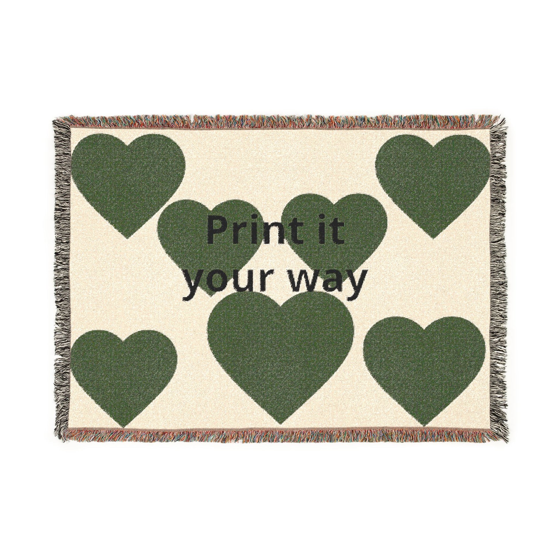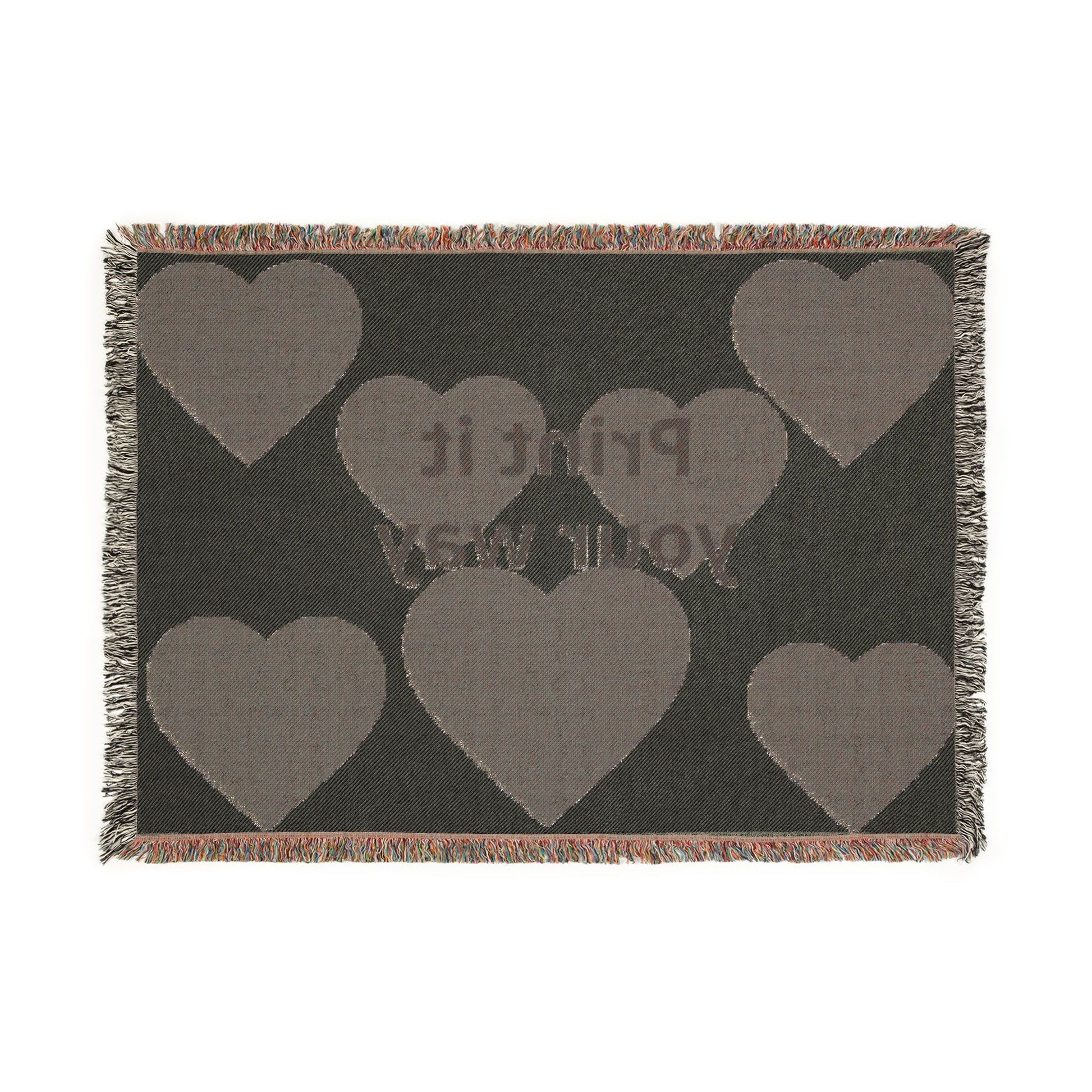 Whether you choose to feature a photo or a piece of graphic art, these cozy blankets elevate images into lasting, quality heirlooms. Put them up on the wall for a cozy display or use it to cuddle up on your couch. These cozy throw-sized woven blankets are woven out of 100% cotton yarn with a colorful edge fringe that extends the image.